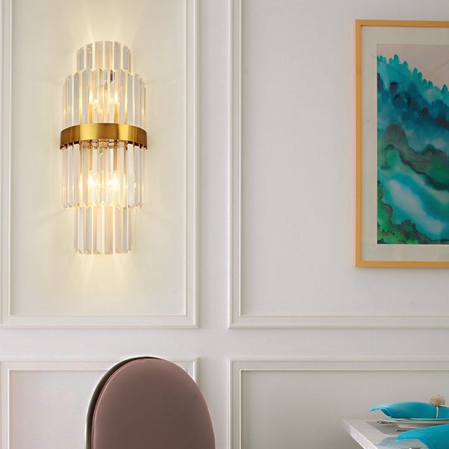 Đèn tường pha lê là loại đèn được thiết kế rất tinh xảo với sự kết nối hài hoà giữa các thanh pha lê với nhau và sự phản chiếu ánh sáng của đèn led những thanh pha lê tạo nên nhiều màu sắc khác nhau tạo nên nhiều hiệu ứng ánh sáng khác nhau làm cho căn phòng của bạn t