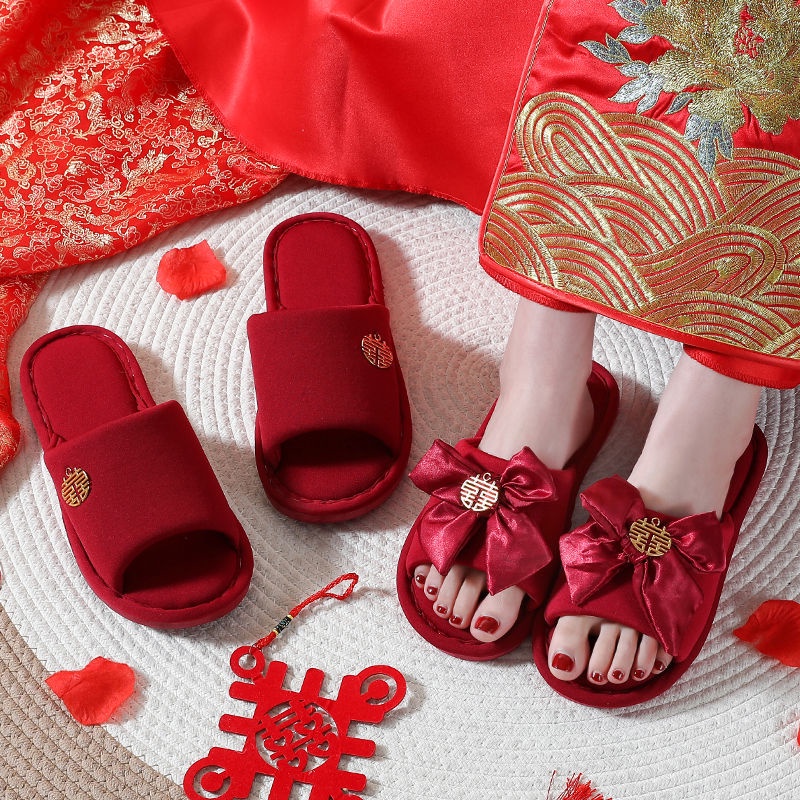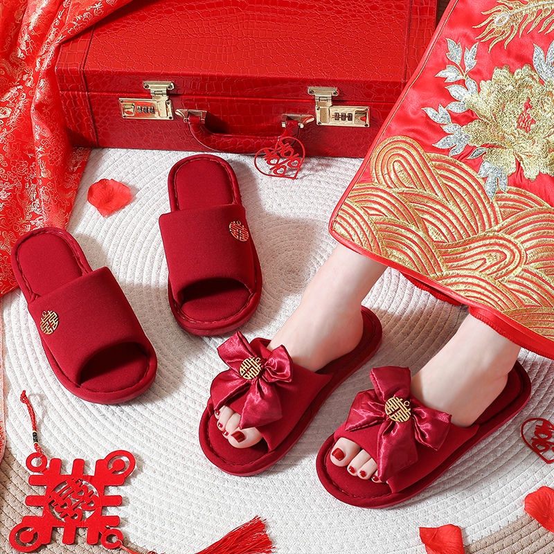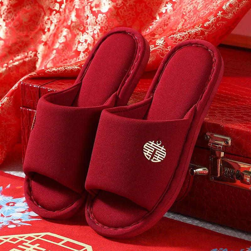 Đôi Dép Đi Trong Nhà Chống Trượt Màu Đỏ Dành Cho Cặp Đôi Cô Dâu Chú Rể Trong Đám Cưới
