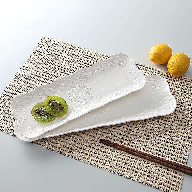 Đĩa Sứ Dập Nổi Hình Chữ Nhật Phong Cách Nhật Bản