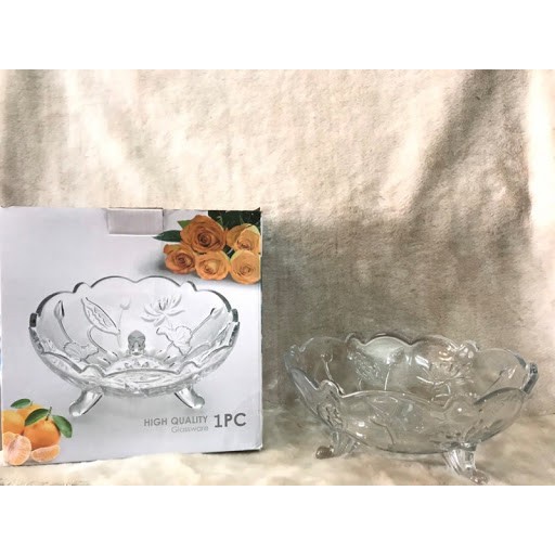 Đĩa Thuỷ Tinh Đựng Trái Cây, Đĩa Thuỷ Tinh Pha Lê 3 Chân Đường Kính 24cm sang Trọng Đựng Bánh Kẹo, Mứt Tết.