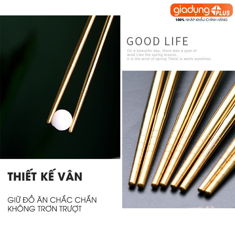 Đũa Inox 401 Mạ Vàng, Tay Cầm Cán Sứ Xanh Ngọc Lục Bảo Sang Trọng - Phong Cách Bắc Âu