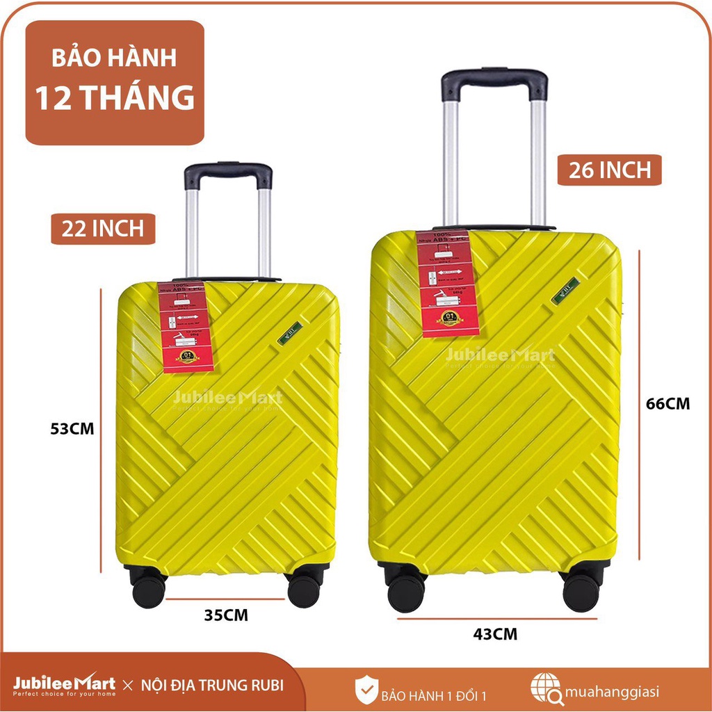 VALI DU LỊCH CAO CẤP NHỰA 4 BÁNH ĐẶC ĐIỂM NỔI BẬC 1. Chất liệu 100% nhựa PP chống va đập tốt Được hoàn thiện bởi 100% chất liệu nhựa PP cao cấp, với ưu điểm vượt trội về tính đàn hồi ấn tượng giúp sản phẩm Vali kéo du lịch Jubilee Mart chống va đập, chống nước và chịu lực rất hiệu quả. Ngoài ra, với thiết kế bề mặt nhám giúp hạn chế trầy xước và dễ dàng vệ sinh sản phẩm. Với những tính năng nổi bật từ chất liệu cao cấp, vali Jubilee Mart sẽ là người bạn đồng hành đáng tin cậy của bạn trên mọi hành trình. 2. Khóa số âm TSA bảo mật hành lý 100% 3. Cần kéo phân nấc thông minh, tay cầm chắc chắn. Sở hữu thiết kế cần kéo hợp kim nhôm cao cấp với đặc tính siêu nhẹ và chịu được áp lực tốt, đặc biệt chất liệu này không bị oxy hóa, không lo rỉ sét. Với chức năng phân nấc tiêu chuẩn, cần kéo được điều chỉnh thay đổi chiều cao phù hợp với vóc dáng và nhu cầu của người sử dụng, giúp giảm thiểu nguy cơ các bệnh về cột sống. 4. Có 8 Bánh xe đôi chống ồn hiệu quả Vali Jubilee Mart 4 Bánh được trang bị hệ thống bánh xe đôi với khả năng chịu lực cực tốt trên 4 trục xoay, toàn bộ trọng lực bên trên sẽ được phân tán đều qua các tiếp điểm với mặt đường. Bên cạnh đó vỏ bánh xe làm bằng cao su thiên nhiên đúc nguyên khối, bọc quanh khung nhựa cứng có lỗi cốt thép đặc bên trong, hạn chế ma sát với mặt đường, hỗ trợ điều hướng vali, giúp di chuyển sản phẩm êm ái, không gây tiếng ồn. Có 4 chân tiếp đất, giúp thay đổi tư thế xách dễ dàng 5. Ngăn chứa rộng rãi, tích hợp dây đai chữ “X” Sản phẩm Jubilee Mart thiết kế ngăn chứa đồ rộng rãi với 1 ngăn chính rộng rãi và 1 ngăn phụ lớn được ngăn cách nhau bằng lưới giúp bạn phân loại hành lý hiệu quả. Bên cạnh đó sản phẩm có tích hợp dây đai chữ “X” tiện lợi giúp cố định hành lý ngăn nắp và an toàn. SHOP CÒN CÓ CÁC MẪU VALI VẢI SIZE 19 Và Size 27 CHO QUÝ KHÁCH LỰA CHỌN