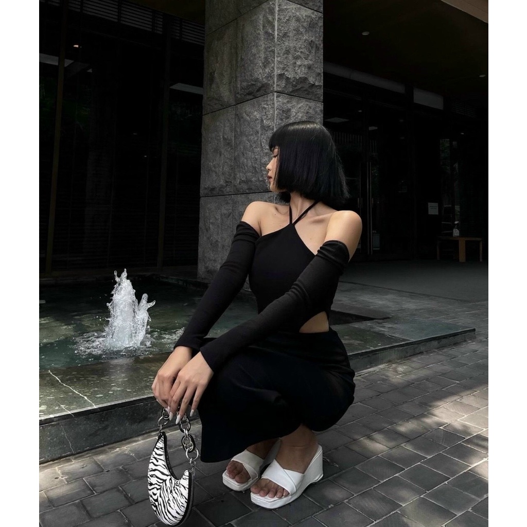 Đầm ôm body đen cutout khoét eo cổ yếm siêu xịn siêu se khoe eo váy đi bar dự tiệc dạo phố chụp ảnh Kawaii