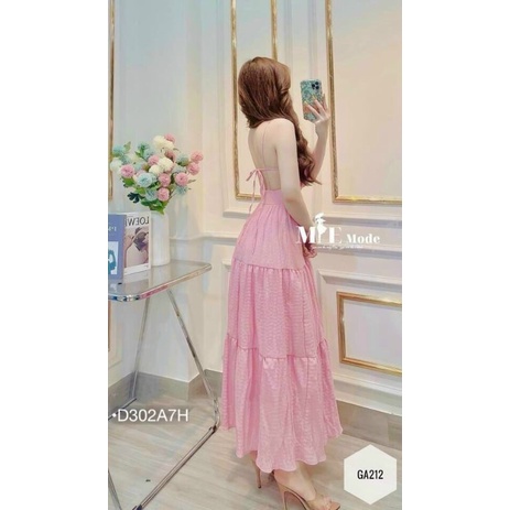 Đầm Đi Biển D302A7H Váy 2 Dây Maxi Hở Lưng Đệm Ngực Dáng Xòe Tầng Vải Đũi Xốp