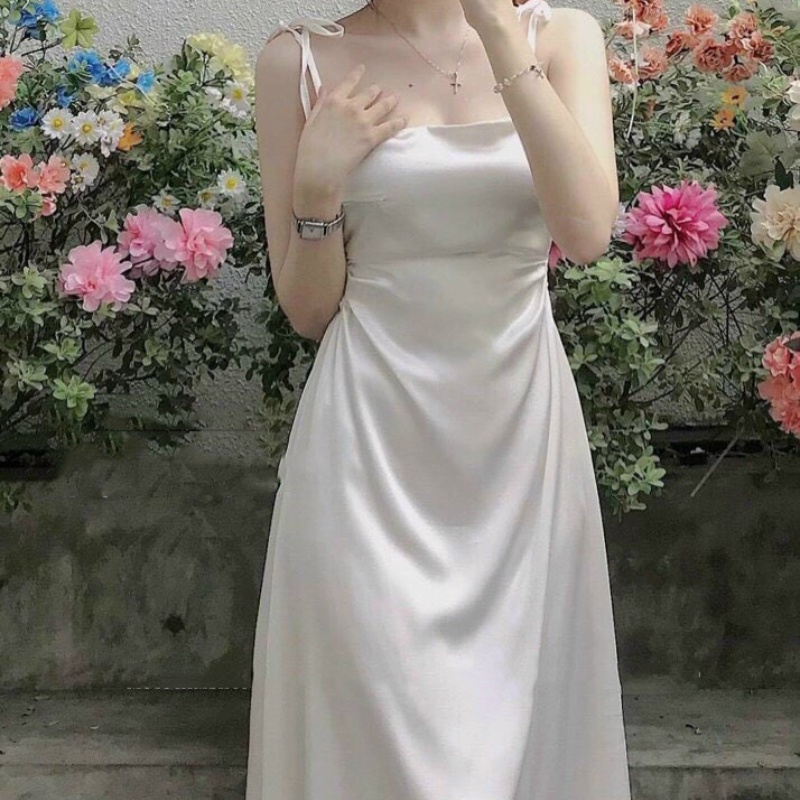 Đầm đi tiệc váy nữ 2 dây buộc vai khoét eo dáng dài chất lụa mềm mại sang trọng phù hợp đi chơi du lịch dạo phố HN0077