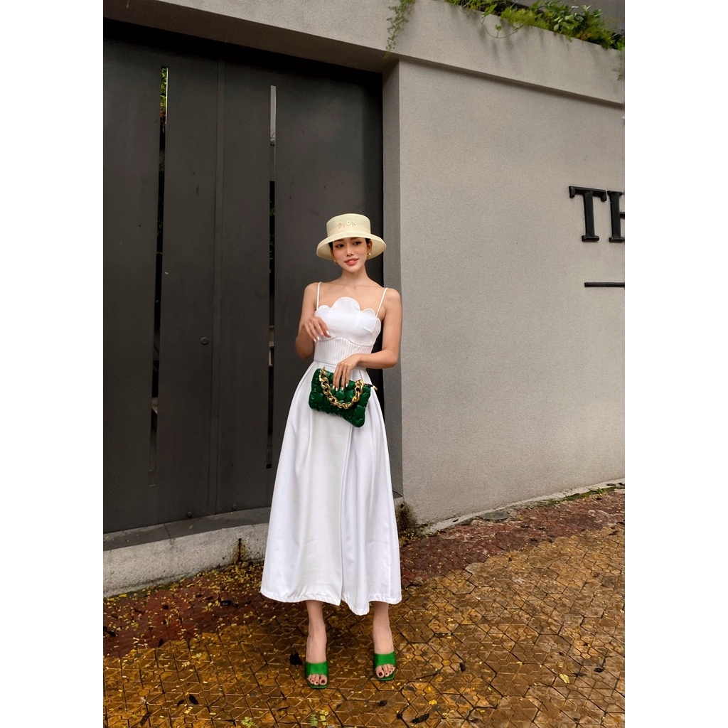 KIOBI – Đầm Dahlia form maxi mùa hè, 2 dây dáng dài rộng, tùng xòe lai bèo, vải tơ gân - KID233169