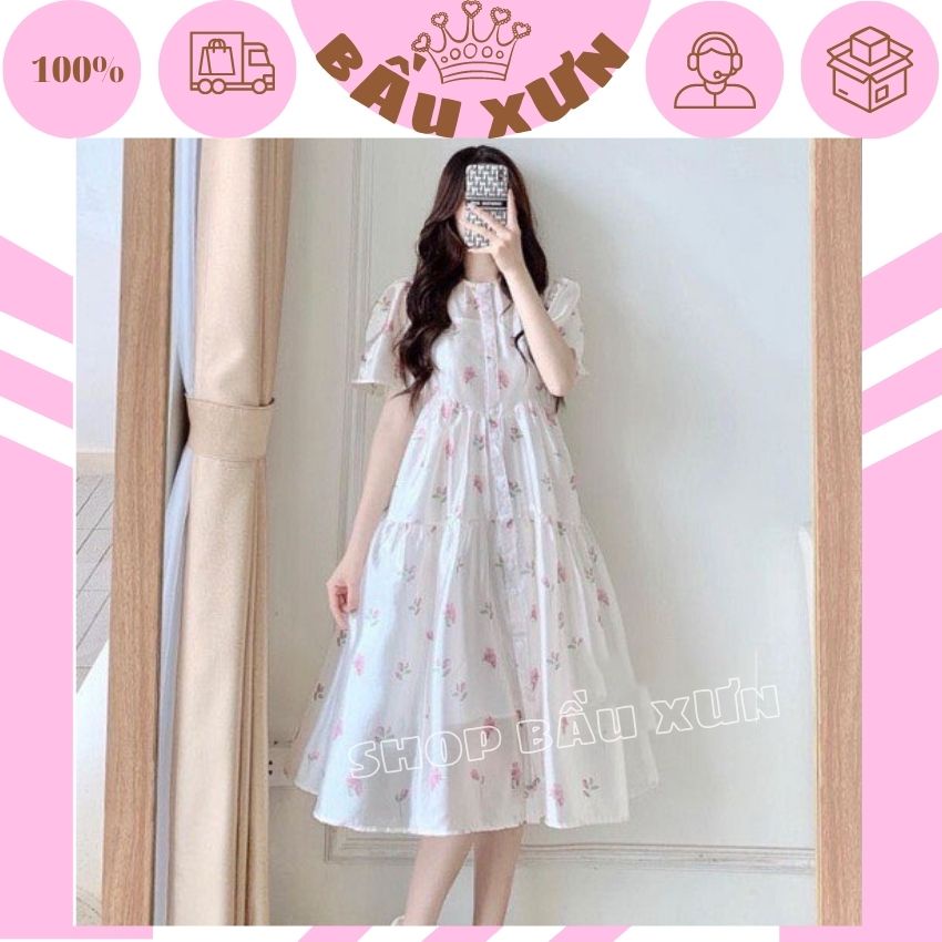 VÁY BẦU TIỂU THƯ HOA NHÍ XINH XẮN - ĐẦM BẦU ĐẸP KIỂU DÁNG HÀN QUỐC CHO MẸ BẦU