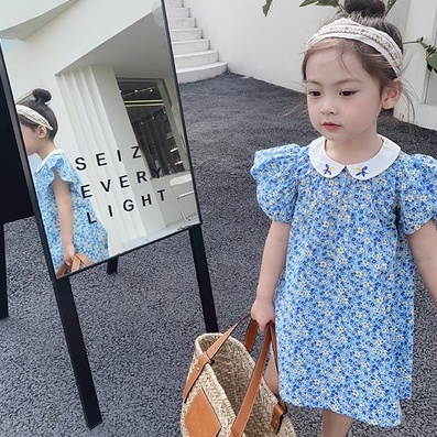 Đầm Công Chúa Cổ Peter Pan In Họa Tiết Hoa Cho Bé Gái 3-8 Tuổi
