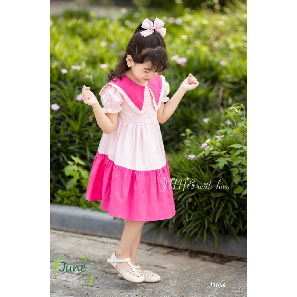 Đầm cổ thủy thủ hồng cánh sen cho bé gái cực xinh