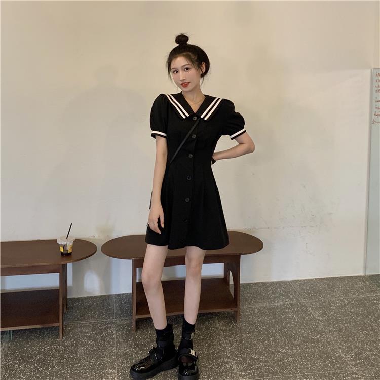 Đầm Chữ A Tay Ngắn Phồng Cổ Thủy Thủ Thời Trang Mùa Hè Hàng Mới
