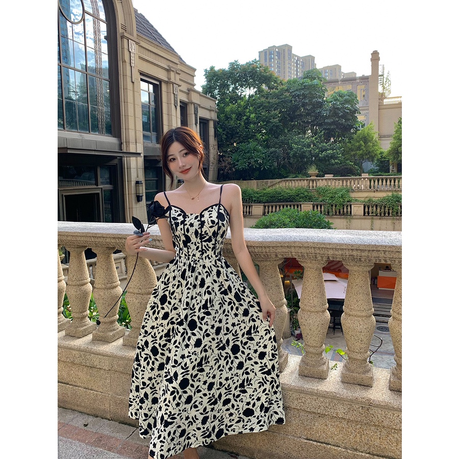 Đầm Dài Hai Dây Cổ Chữ v In Họa Tiết Hoa Thời Trang Mùa Hè Dành Cho Nữ