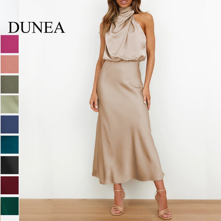 Đầm dạ hội đầm dự tiệc lụa trễ vai maxi xẻ tà sang trọng mặc đi bàn đi tiệc cưới