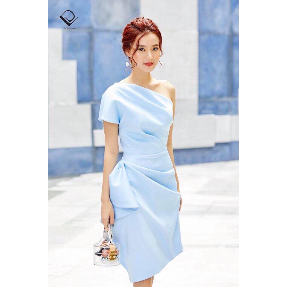 Đầm Dự Tiệc Ôm Body Dài Qua Gối Thiết Kế Lệch Vai Nhấn Bèo Sang Trọng Alvin Store 2500