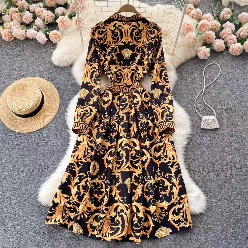 Đầm dự tiệc thiết kế họa tiết print Quảng Châu cao cấp váy lụa dài thương hiệu thời trang D&R D125