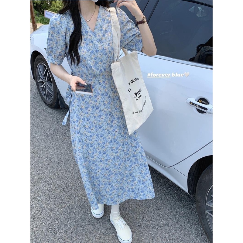 Đầm Hoa Tay Ngắn Cổ Chữ V Dáng Ôm Thời Trang Mùa Hè 2022 Mới Mẻ Cho Nữ