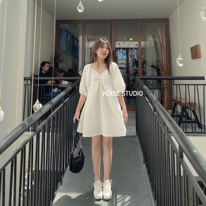 Đầm ngắn cổ yếm hai dây xòe dáng babydoll ren hoa 3D phối lưới - CHOO.VN