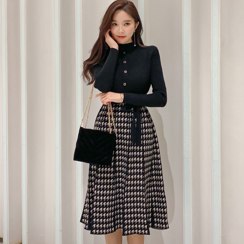 Đầm Len Đen Cổ Cao Cài Khuy Kiểu Pháp Thời Trang Thu Đông 2022