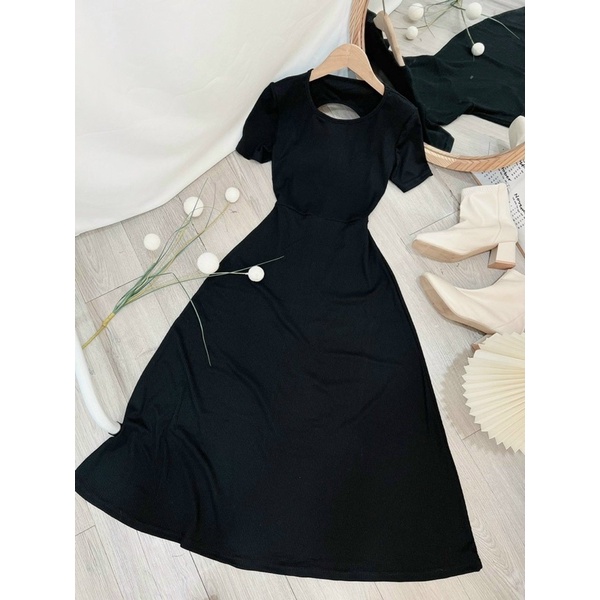 Đầm maxi cổ tròn tay ngắn hở lưng dáng xoè , váy nữ dáng dài xuất xịn
