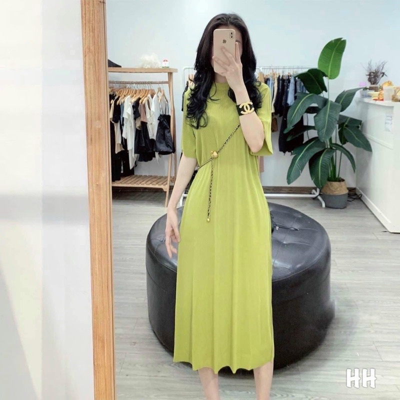 Đầm Maxi Dập Ly Dáng Suông Cổ Tròn Hàng Đẹp Chất Mềm