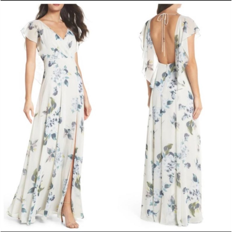 Đầm maxi hoa nhí viền bèo tà đắp chéo VNXK cổ khoét sâu hở ngực vs lưng sexy đầm đi biển xuất khẩu dư xịn