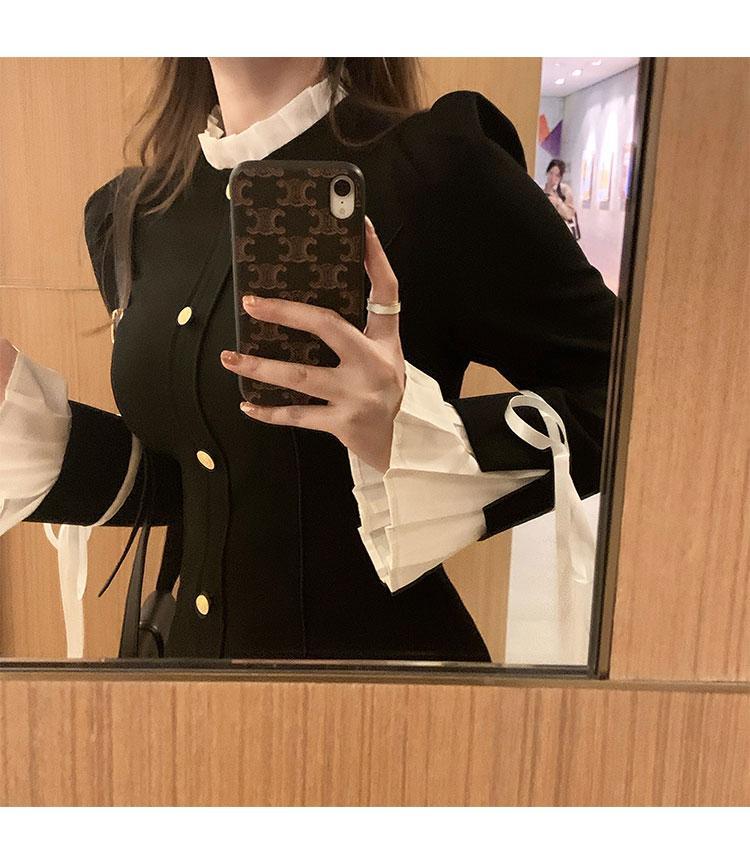 Đầm midi tay dài màu đen thời trang 2023 cổ điển cho nữ