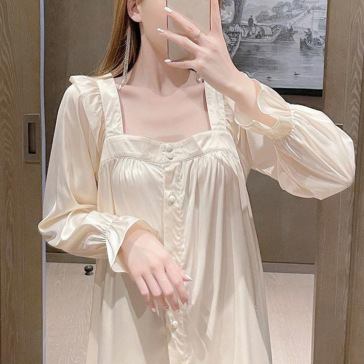 Đầm Ngủ Dáng Dài Phong Cách Pháp Cổ Điển Thời Trang Xuân Thu Mới 2022 Dành Cho Nữ