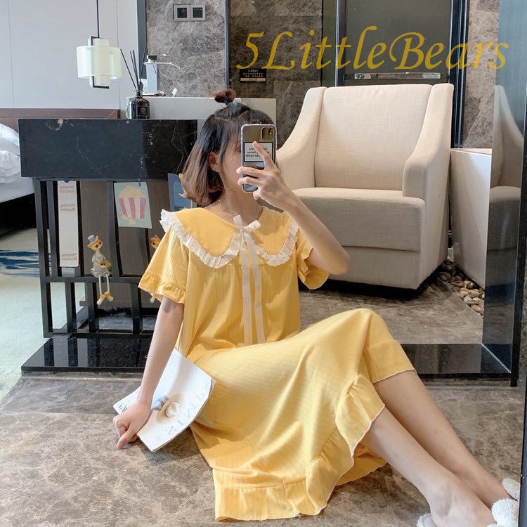 Đầm Ngủ Tay Ngắn Cổ Búp Bê Dáng Rộng Thời Trang Xinh Xắn Cho Nữ