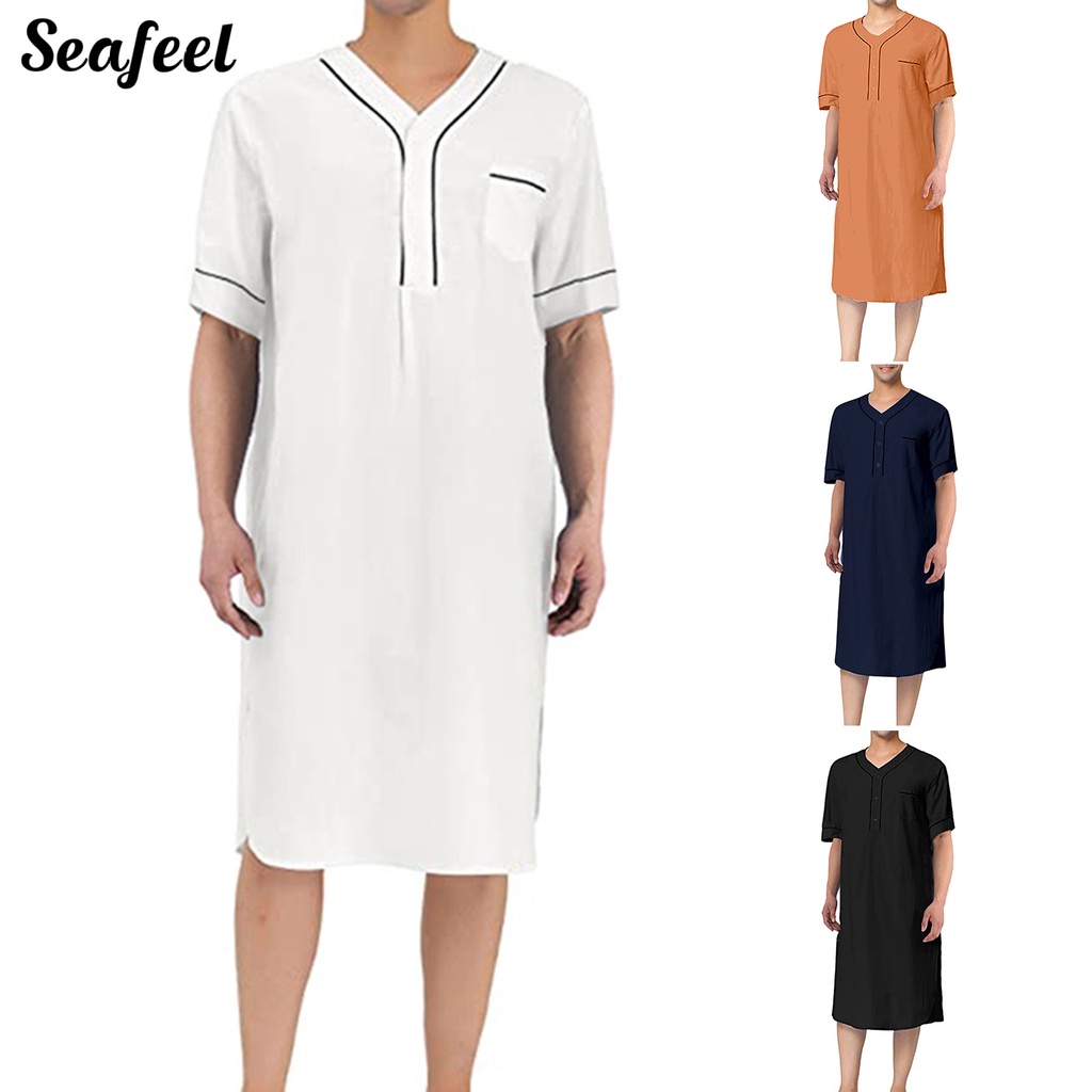 Đầm Ngủ Tay Ngắn Cổ Chữ V Màu Sắc Đơn Giản Dành Cho Nam