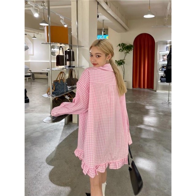 Đầm Sơ Mi Cổ Bèo Họa Tiết Sọc Caro Phong Cách Hàn Quốc Thời Trang