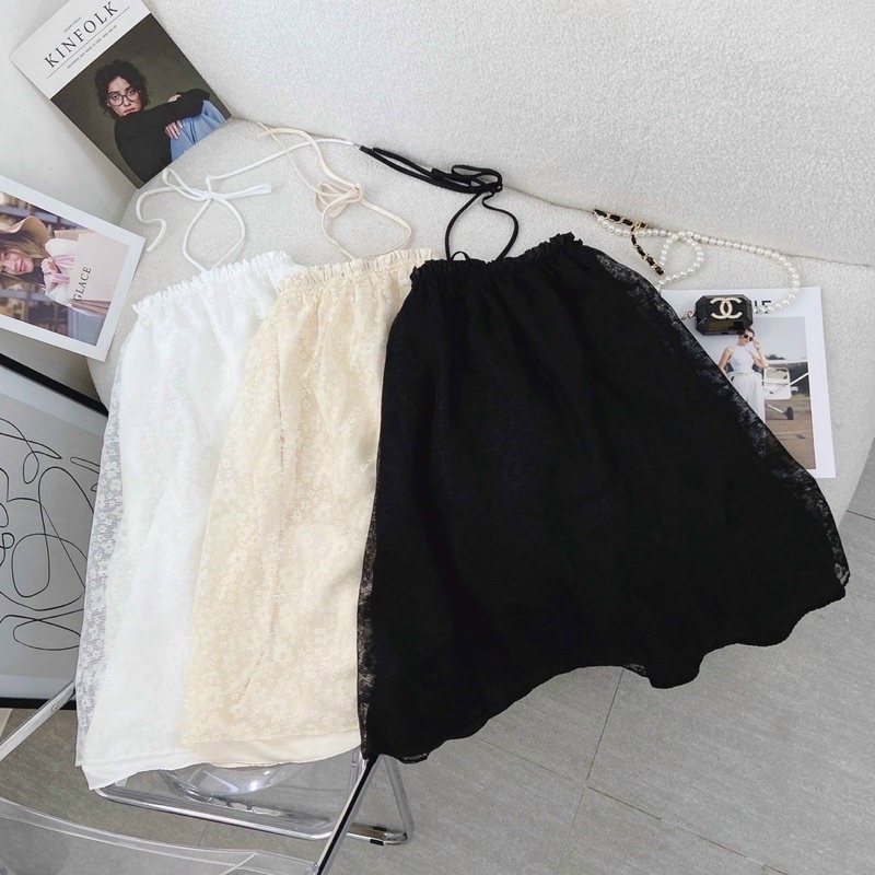 Set Đầm Tăm Lạnh Tay Ngắn Dáng Xoè Tầng + Váy Đuôi Cá Xoè Tung Có Lót Quần