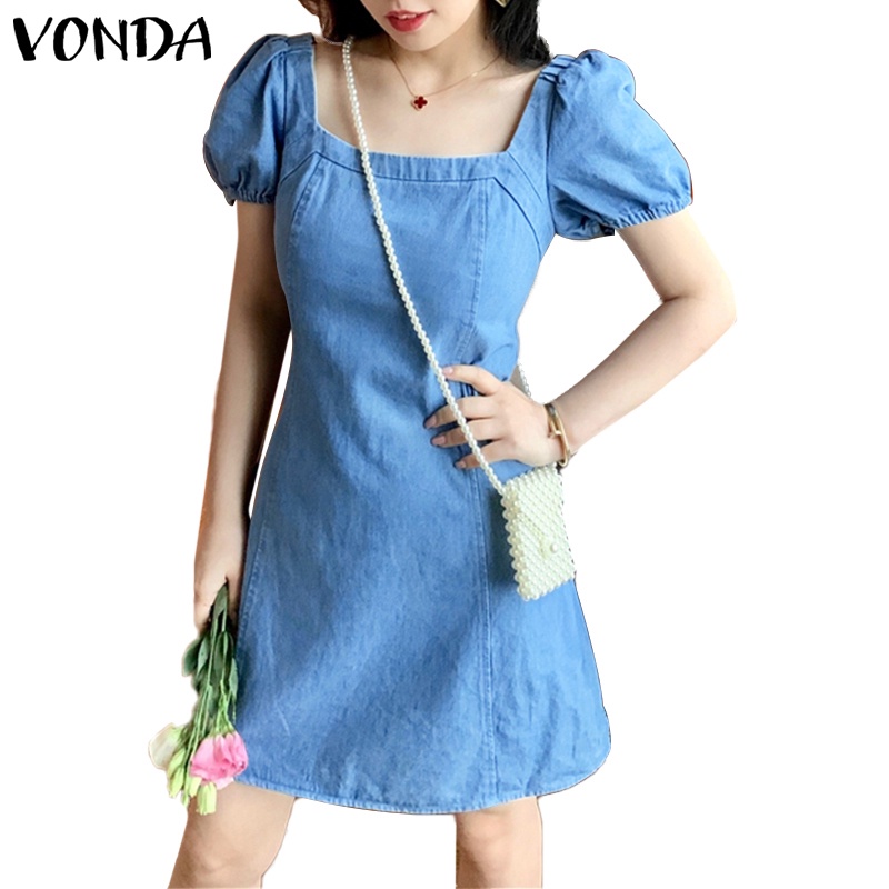 Đầm Vonda tay ngắn cổ vuông thời trang mùa hè phong cách Hàn Quốc cho nữ