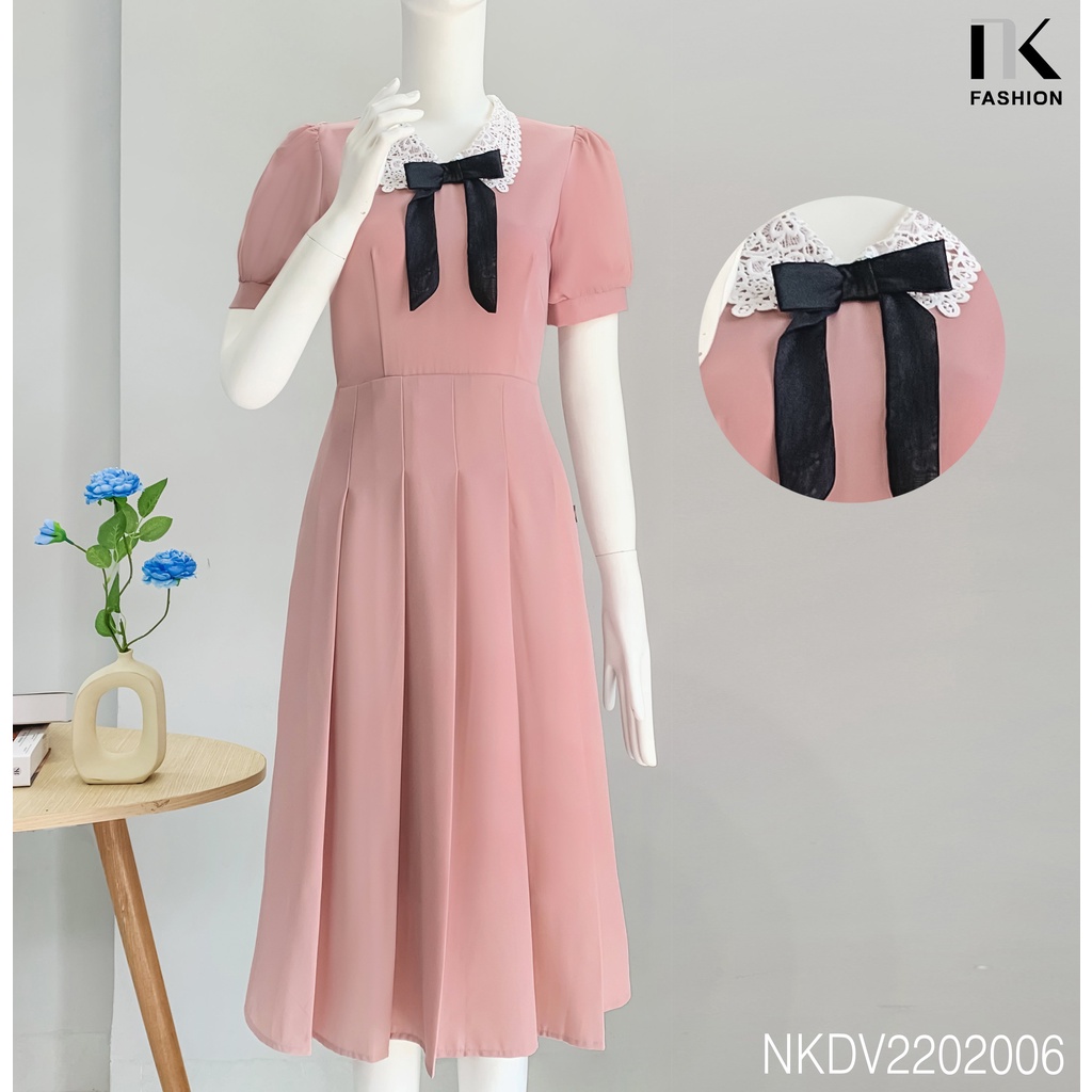 Đầm Xòe Xếp Ly Phối Nơ Cổ NK Fashion Chất Liệu Vải Cao Cấp, Tôn Dáng, Thiết Kế Thanh Lịch, Hiện Đại NKDV2202006