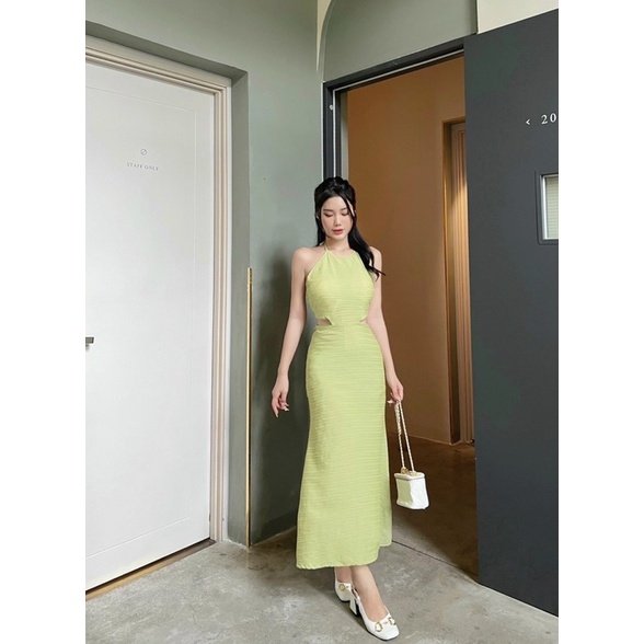 Đầm maxi cổ yếm khoét eo buộc dây cổ Briebrie cao cấp chât liệu xốp, sang chản - 248