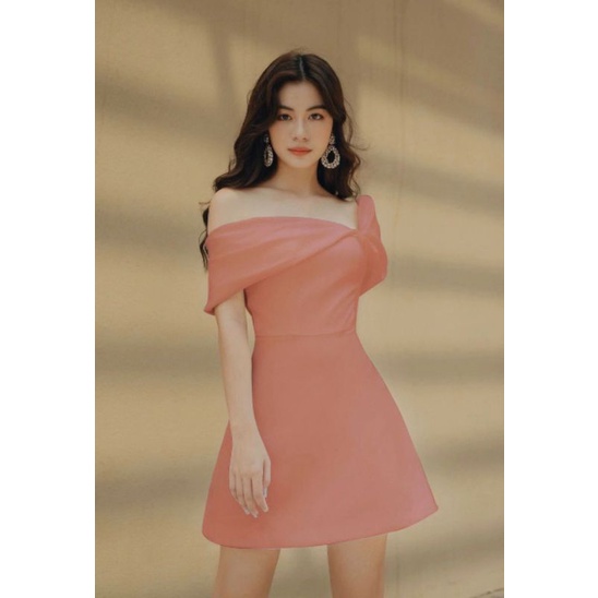 Đầm xoè dự tiệc ngắn lệch vai tay phồng