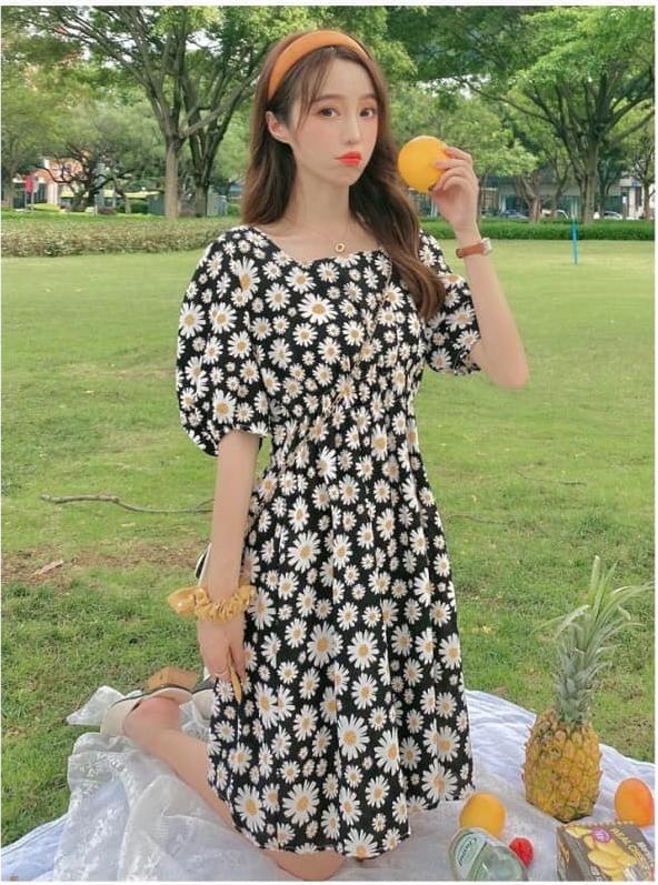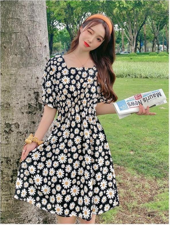 ĐẦM XOÈ HOA NHÚN EOChất: lụa mangoKiểu dáng: đầm xoè cổ tròn, tay ngắn, eo bo thunSize: M L XL- Size M (46~54kg, ngực 92, eo thun 52~80, dài 90)- Size L (53~57kg, ngực 94, eo thun 60~86, dài 90)- Size...