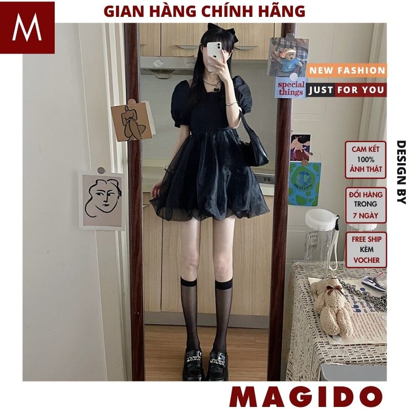 Đần nữ babydoll công chúa bánh bèo voan 2 lớp có mầu đen và trắng kiểu dáng hàn quốc ,váy dực tiệc cực xinh -MAGIDO