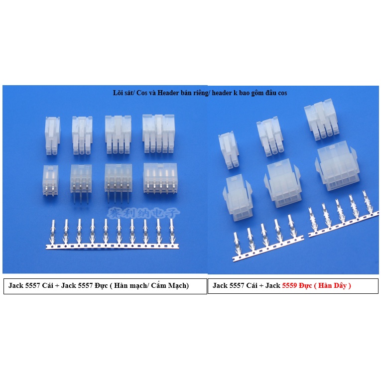 Đầu jack nối 5557 5559 2/4/6/8/10P Đực-cái các loại và đầu cos dùng nối dây điện tử/ máy tính