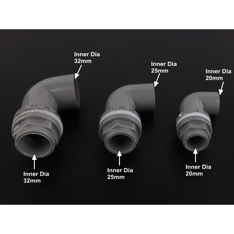 Đầu nối ống nước gấp khúc bằng PVC đường kính bên trong 20-50mm 90 độ cho bể cá
