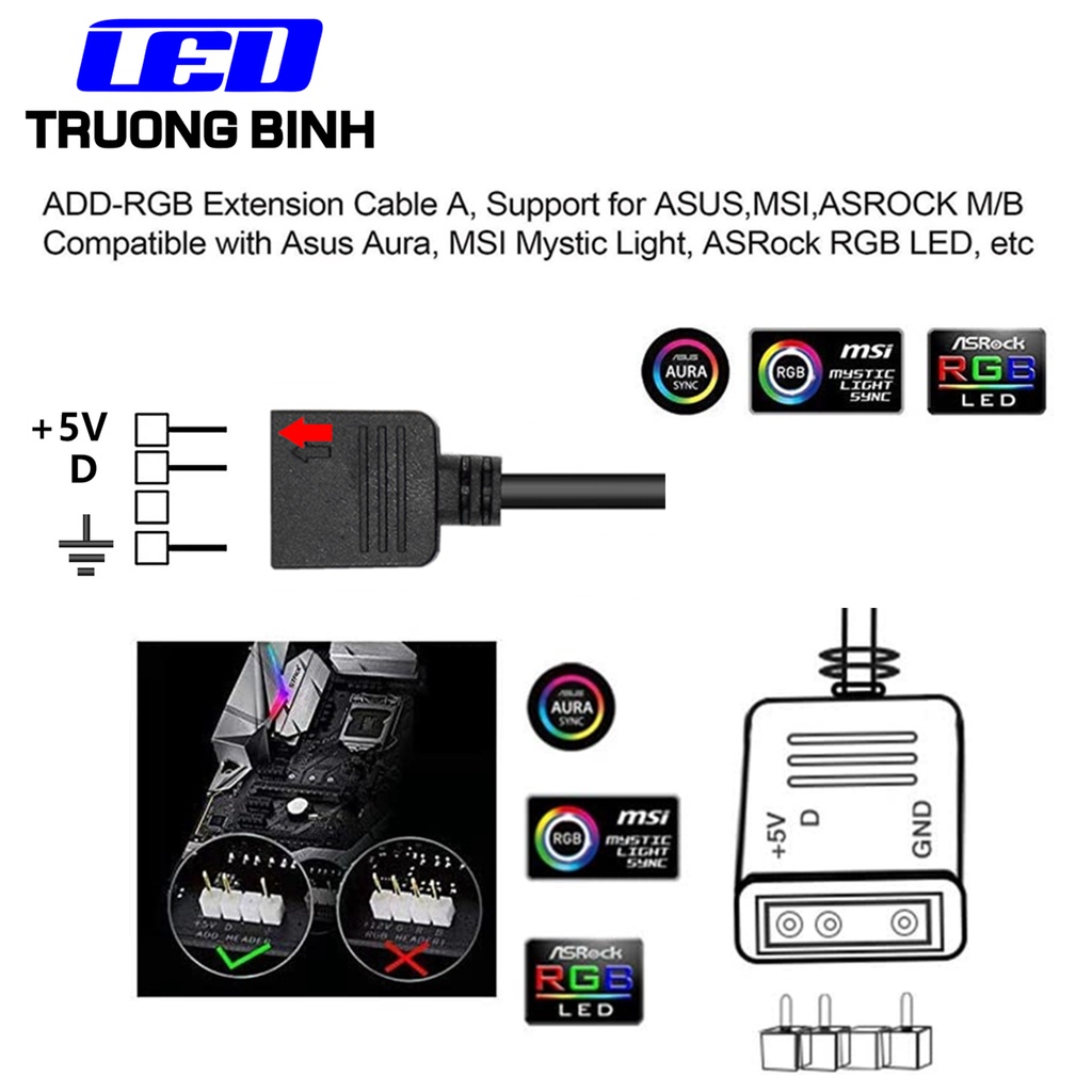 - Lưu ý: giá niêm yết bao gồm đầu nối argb và kim 3pin - Điện áp: ≤36V - Kí hiệu: Đỏ DATA, xanh dương GND, đen V+ 5V - Chiều dài dây: 15cm/30cm/50cm - Dùng kết nối cổng A-RGB 5v 3PIN board máy tính với dây led full màu WS2812B - Kim 3pin ko tặng kèm theo dây ARG