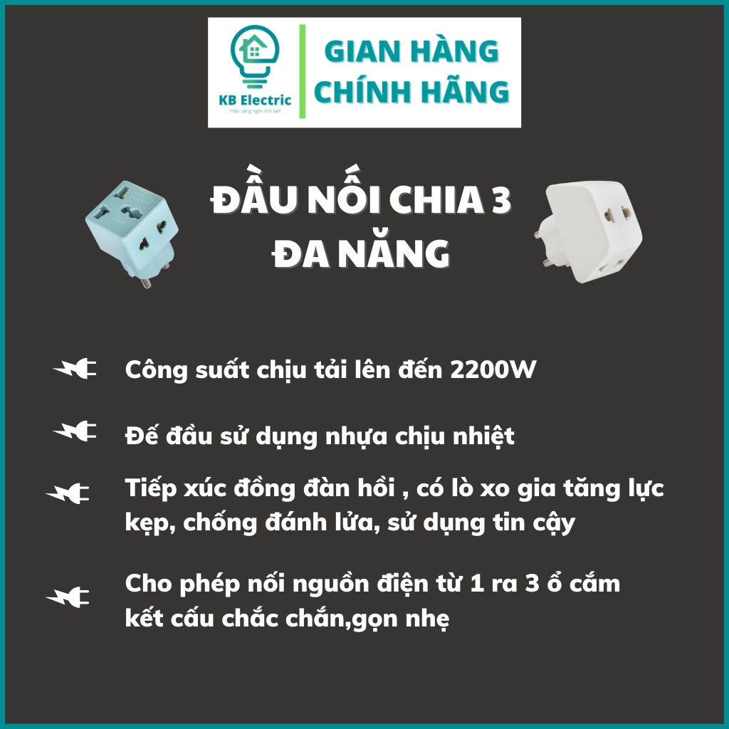 Đầu nối chia điện đa năng 3 cửa KB Electric - SOPOKA P11 P15 chịu tải 2200W