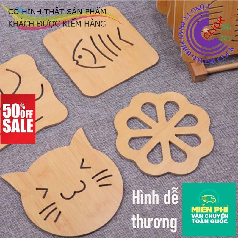 Đế gỗ lót nồi chén bát, lót ly cốc cách nhiệt nhiều hình dễ thương P0514