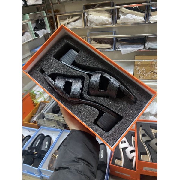 Dép nữ đế cao Guốc Hm 5 phân gót vân gỗ quai da sần xịn xò _ guốc H