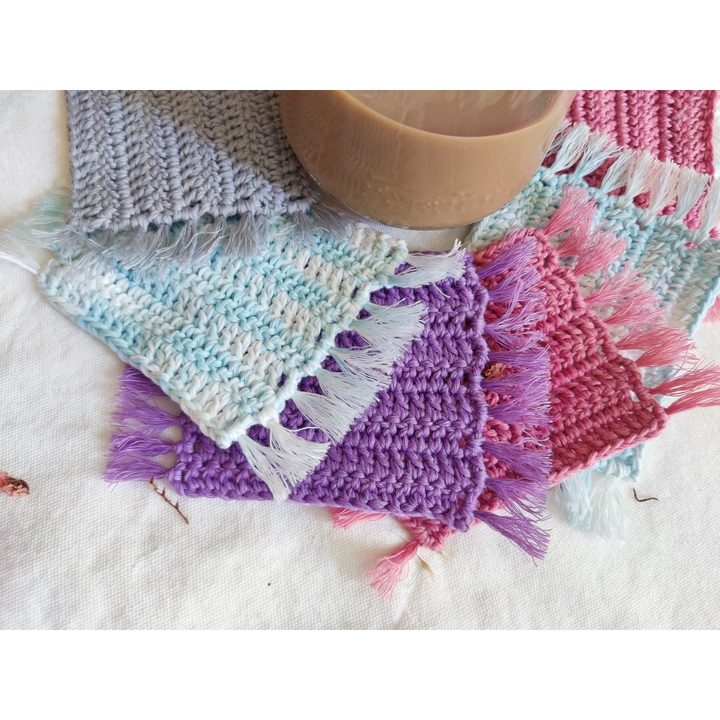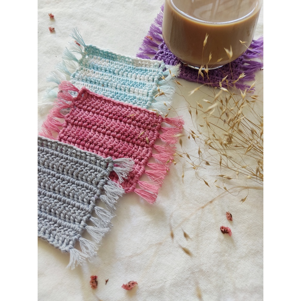 Đế lót cốc, miếng lót ly thấm nước hình vuông phong cách cổ điển vintage handmade từ len