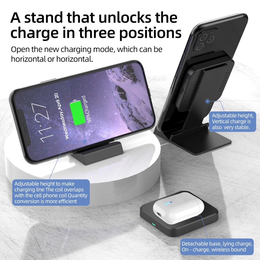 Đế Sạc Không Dây Đa Năng 10W 3 Trong 1 Cho Điện Thoại Đồng Hồ Thông Minh