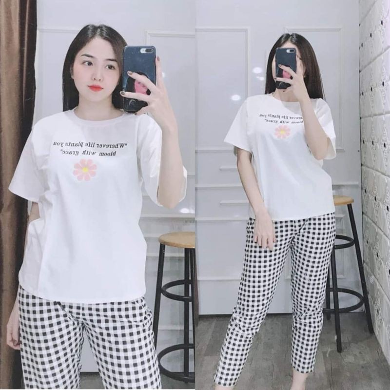 Đồ Bộ Thun Nữ Lửng Bigsize Mặc Nhà Trung Niên Giá Rẻ Dễ Thương Cotton Co Giãn Thoải Mái S168