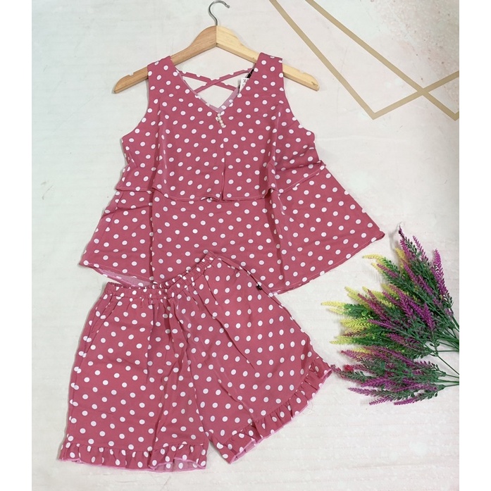 Đồ Bộ Nữ Mặc Nhà Quần Short + Áo 2 Dây Phối Tầng Lụa Latin_Ngân Boutique Đồ Ngủ Pijama
