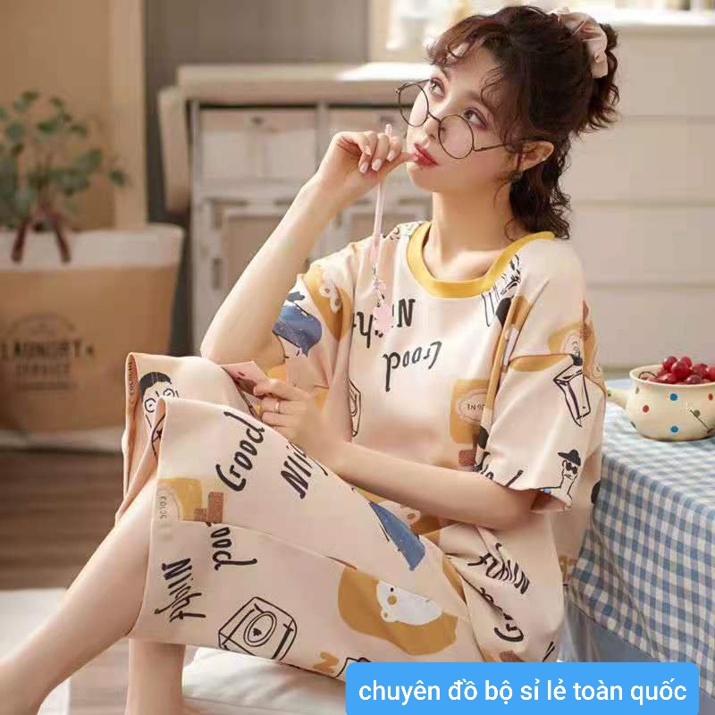 Đồ bộ nữ dễ thương, pijama, đầm ngủ cotton mặc nhà cao cấp tay cộc quần lửng mùa hè chất vải mềm mịn thoáng khí L01u