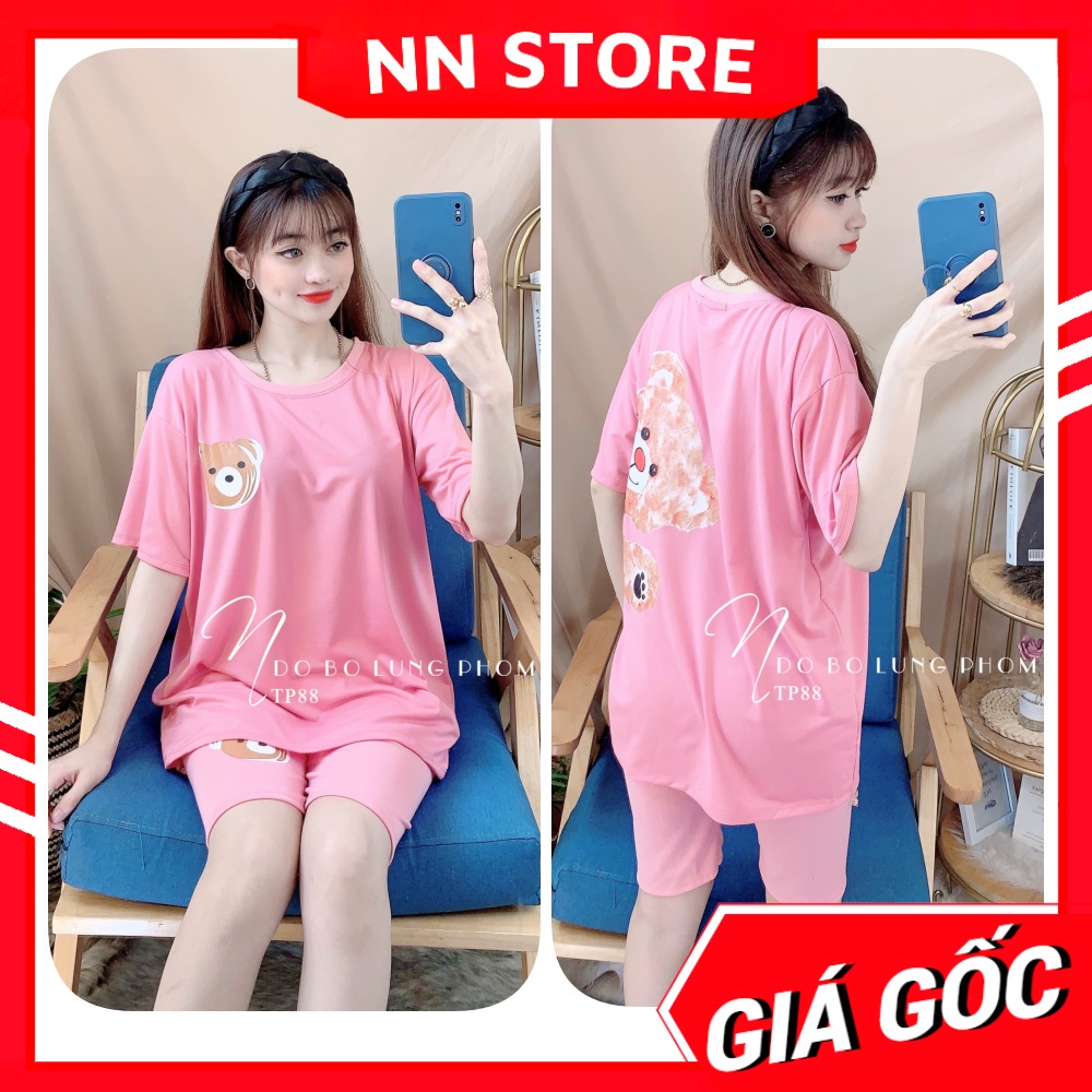 Đồ bộ nữ mặc nhà phom to chất thun mềm mịn mát in hình gấu dễ thương TP88 Bộ thun lửng phom to