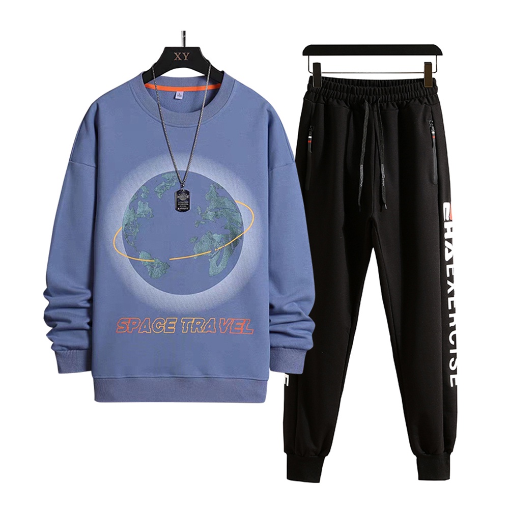 Đồ bộ nam ZENKODLMEN áo sweater cổ tròn dài tay in quả địa cầu và quần jogger thể thao - TOP 201 + JG 75