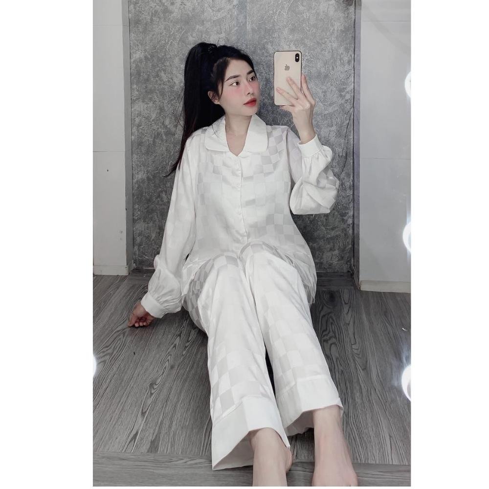 Đồ Bộ Ngủ Pijama Lụa Gấm Cao Cấp Áo Dài- Quần Dài - Bộ Mặc Nhà Siêu Hot